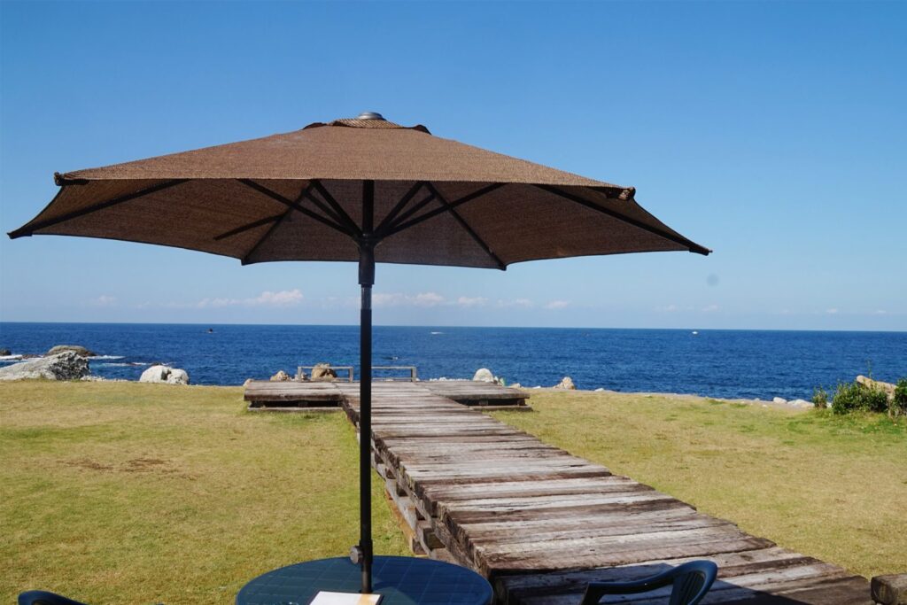 cafeMareは福井市越前海岸沿いに位置します。F分の1のゆらぎを感じる日本海を一望できる魅力的な席で、美味しいスウィーツや飲み物を頂くことができるカフェです。日本一のロケーションで、カニクリームシチューやイカ明太パスタなど、海の幸をふんだんに使った料理が特にオススメ。全てテイクアウト可能なのも嬉しいところ。